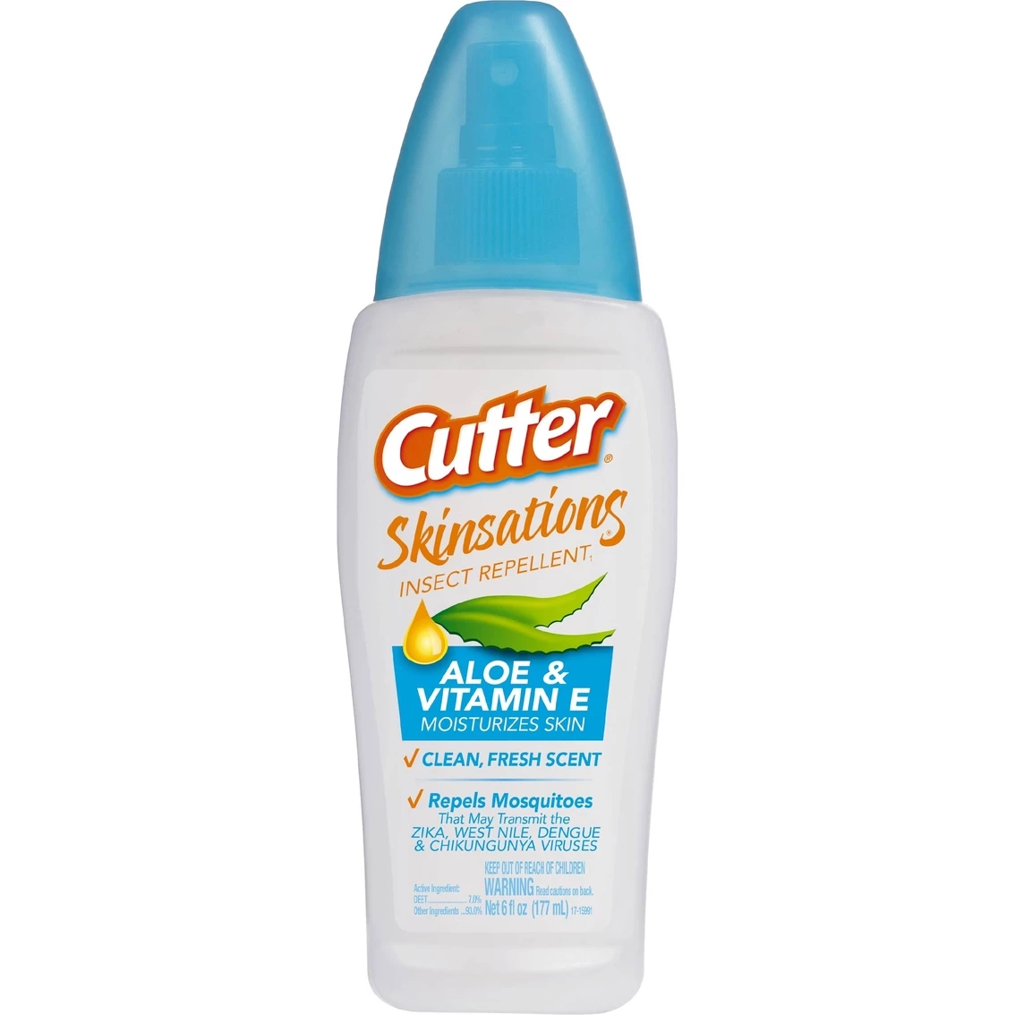 Cutter Skinsations Insect Repellent Pump Spray repels mosquitoes. Contains aloe and vitamin E to moisturize skin. The formula is not greasy or oily and it has a clean, fresh scent. The 360-degree spray pump sprays at any angle.
