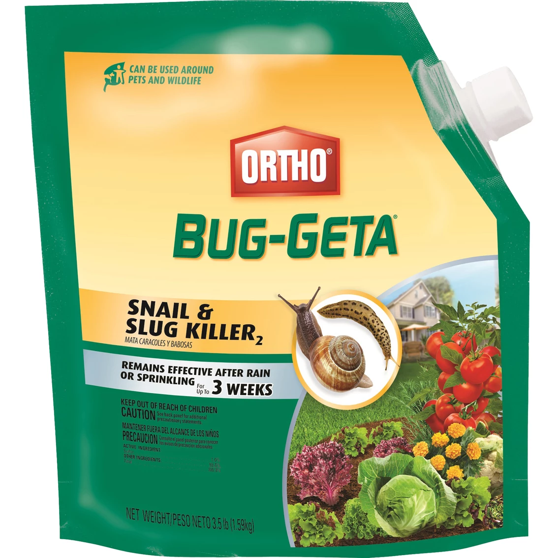 Ortho Bug-Geta Snail & Slug Killer 3.5 lb. bag is convenient, easy-to-use formula requires no mixing or spraying. Remains effective after rain or sprinkling for up to three weeks. 3.5 lb.