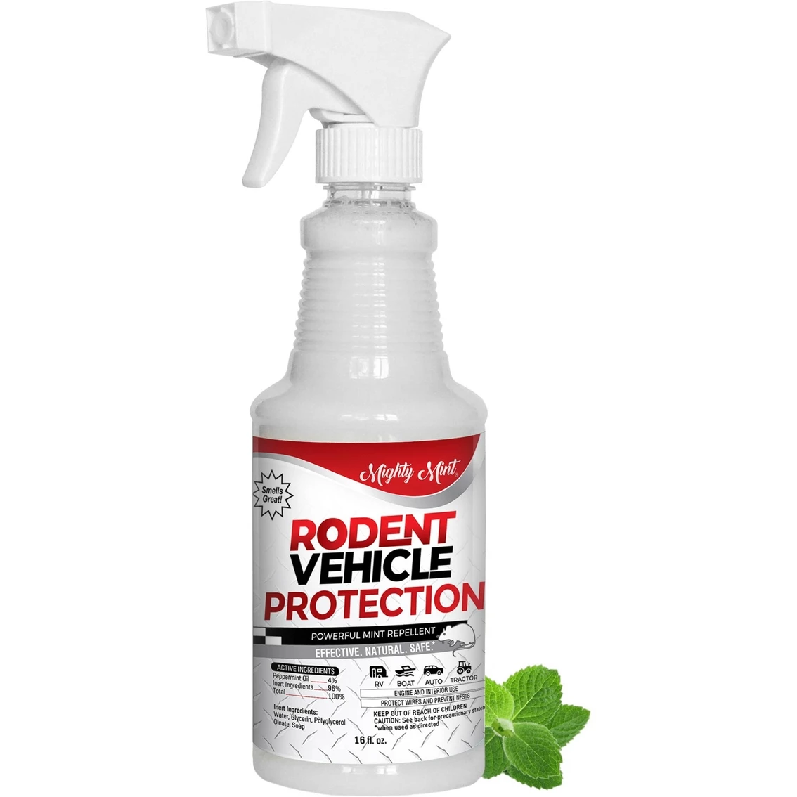 Pure Origins Mighty Mint Vehicle Rodent Repellent is the natural way to protect vehicle interiors and exteriors from rodent damage. The spray is made with high-strength peppermint essential oil, a proven deterrent for mice and other rodents. This Northwest peppermint in particular has a smell that is pleasant to humans but irritating to unwanted pests. For best results, use as a preventative measure before rodents have nested.